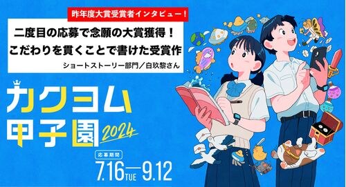 先日、「カクヨム甲子園2024」の詳細が発表されました。 7月16日の開幕に先立ち、昨年の大賞受賞者へのインタビューを掲載いたします。 執筆のアドバイスや着想のきっかけなど、応募を考えている高校生の皆さんの参考になること間違いなし。ぜひご覧ください…