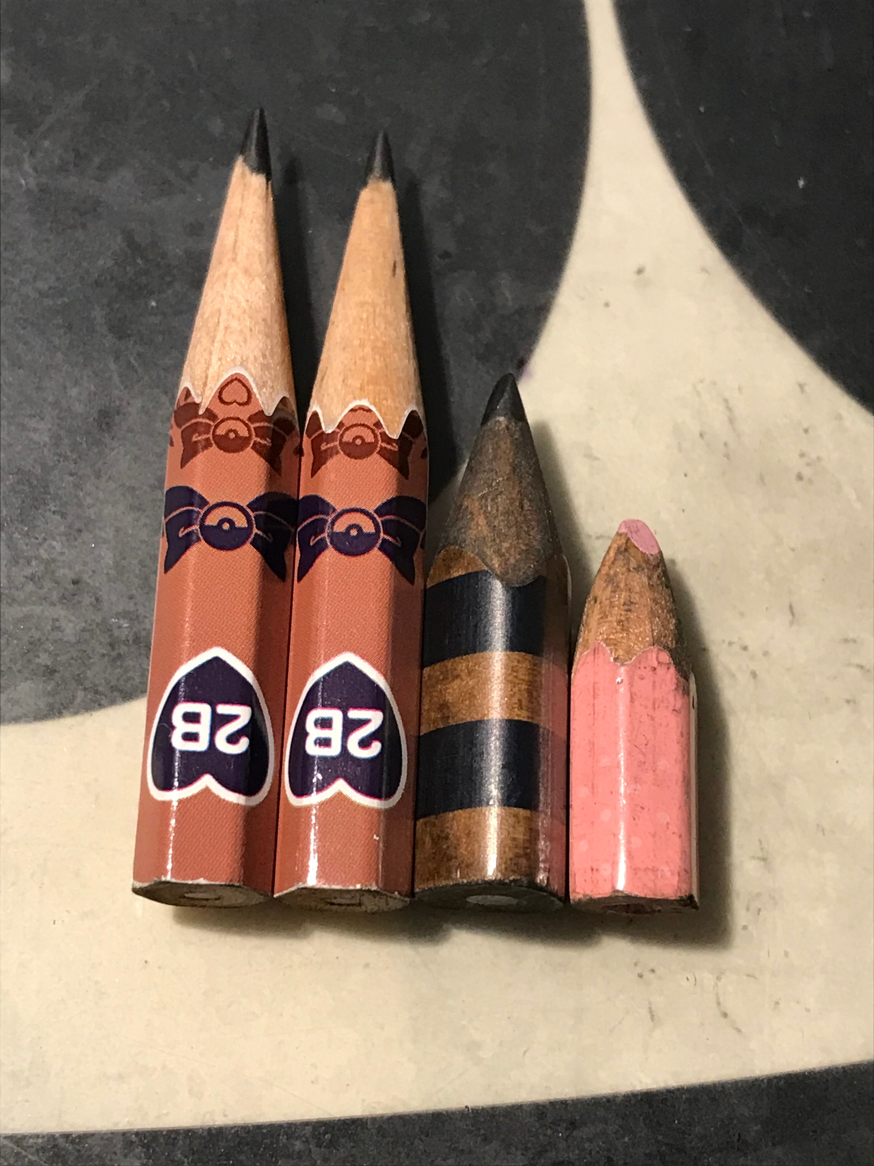 私が持ってる1番短い鉛筆とチャコペンですね…