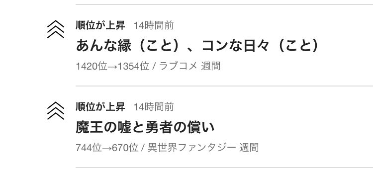 更に更に!何と!「コン」と「まおつぐ」、両方の作品がランクアップを果たしております!!もう感無量でございます!(´;ω;`)