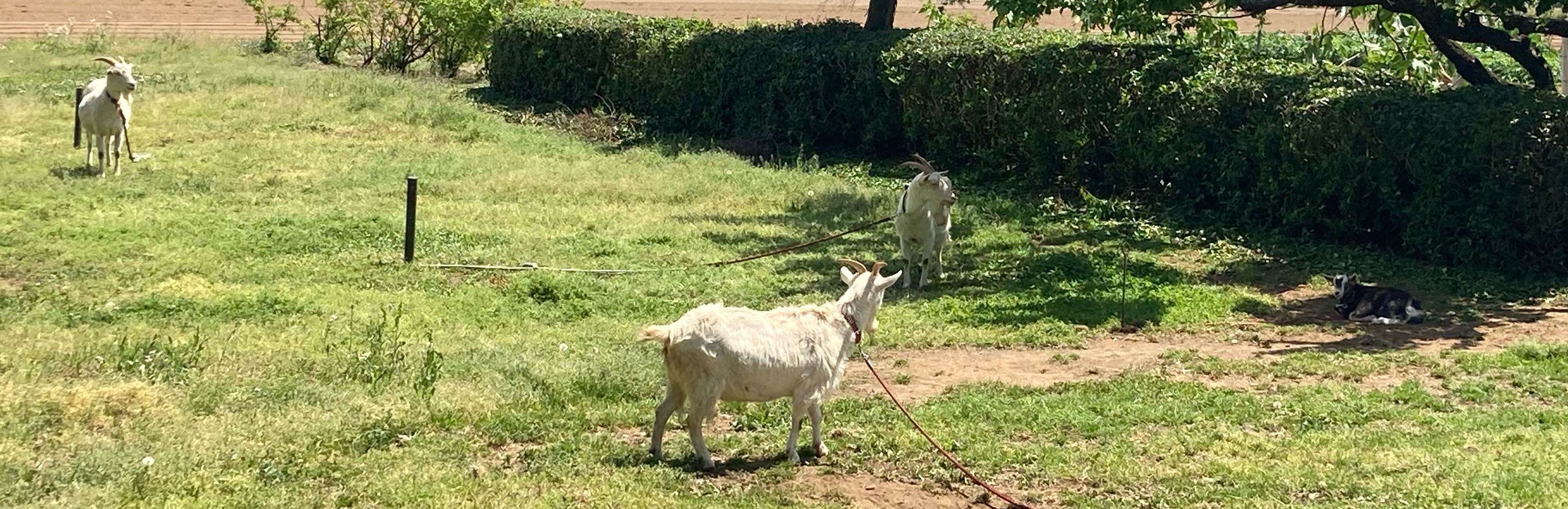 ヤギが4頭も飼えるなんて、ご近所様広いお庭ですね。