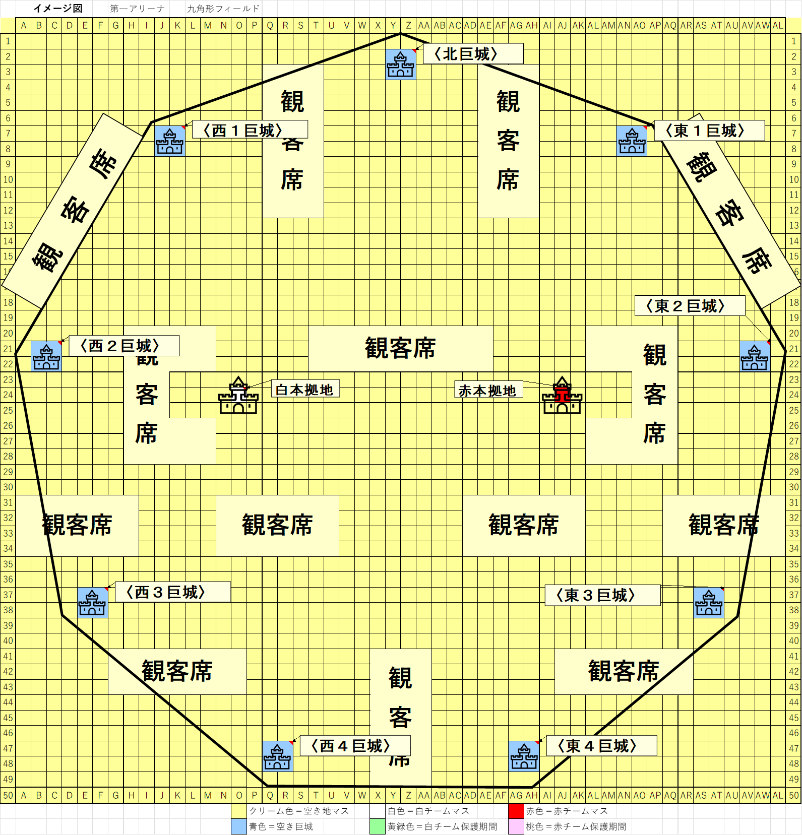 本来は最北以外の4巨城をそれぞれが確保し最北の巨城をどちらが取るかで初動が決まり、後は本拠地を巡っての対人戦が主体になるという感じですかね