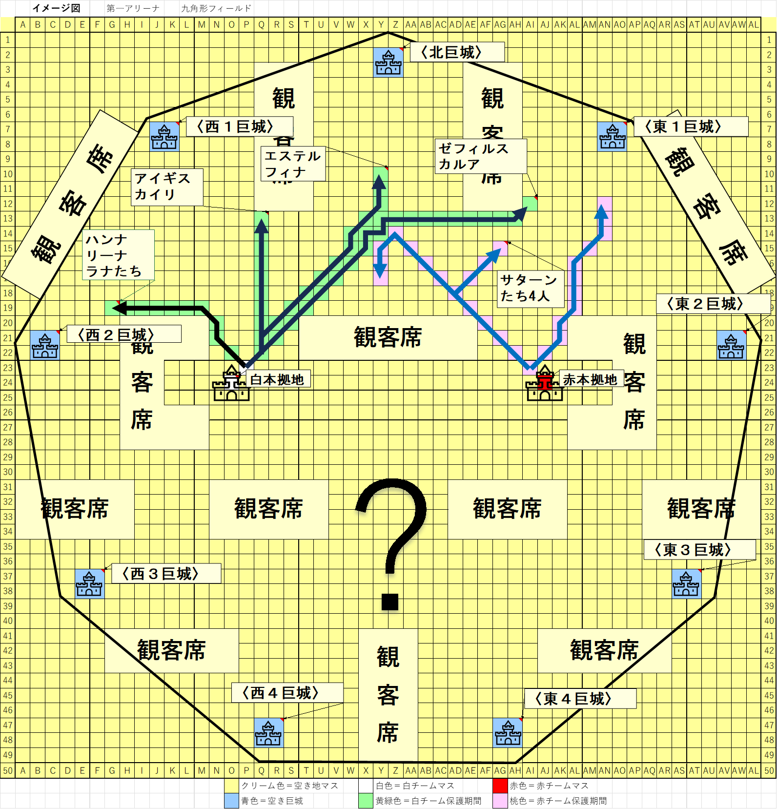 南側半分と、本拠地同士の間の戦いはまだ秘密。