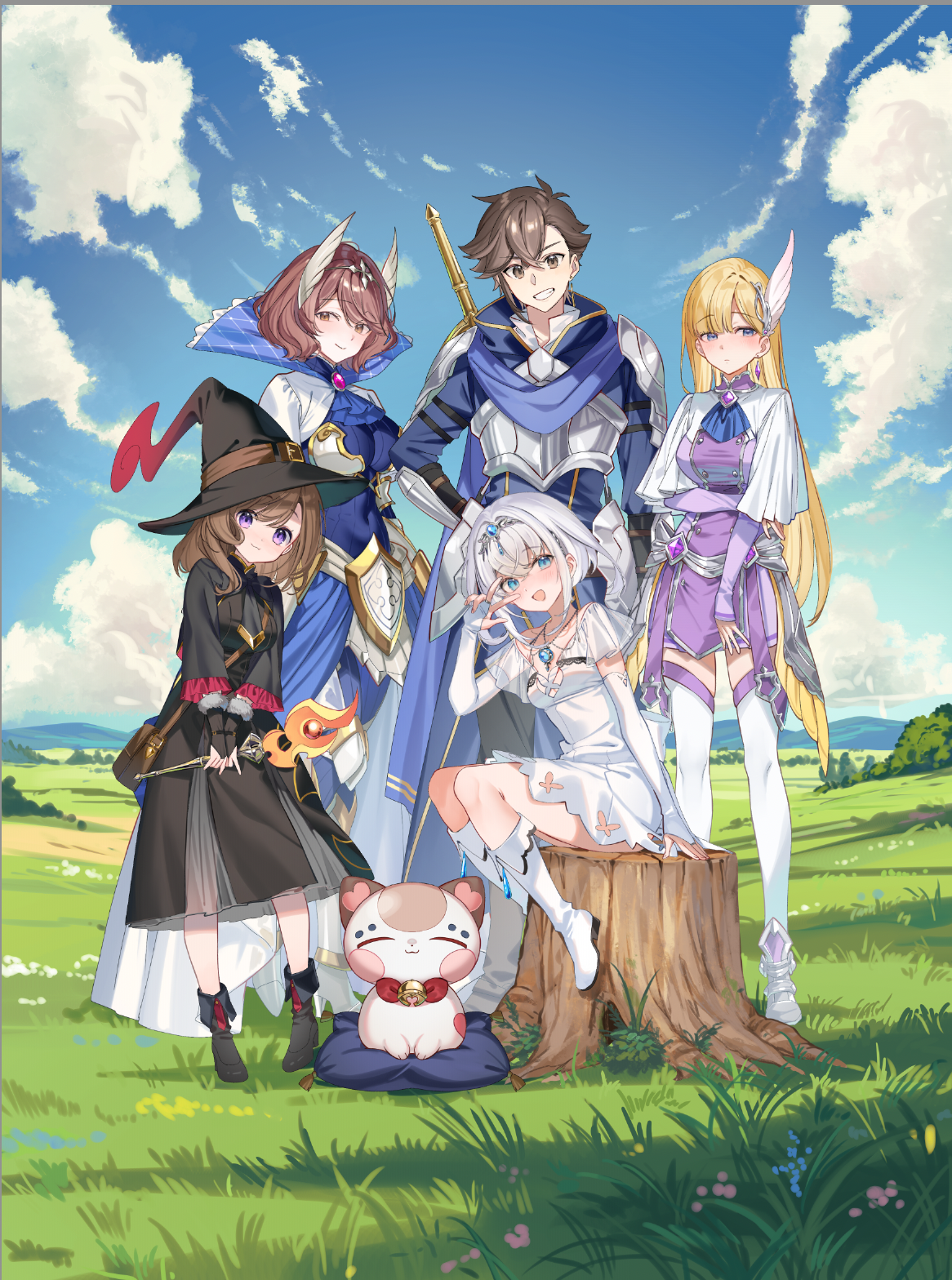 ゼフィルス、ハンナ、シエラ、ラナ、エステル、そして〈幸猫様〉の5人と1体です!