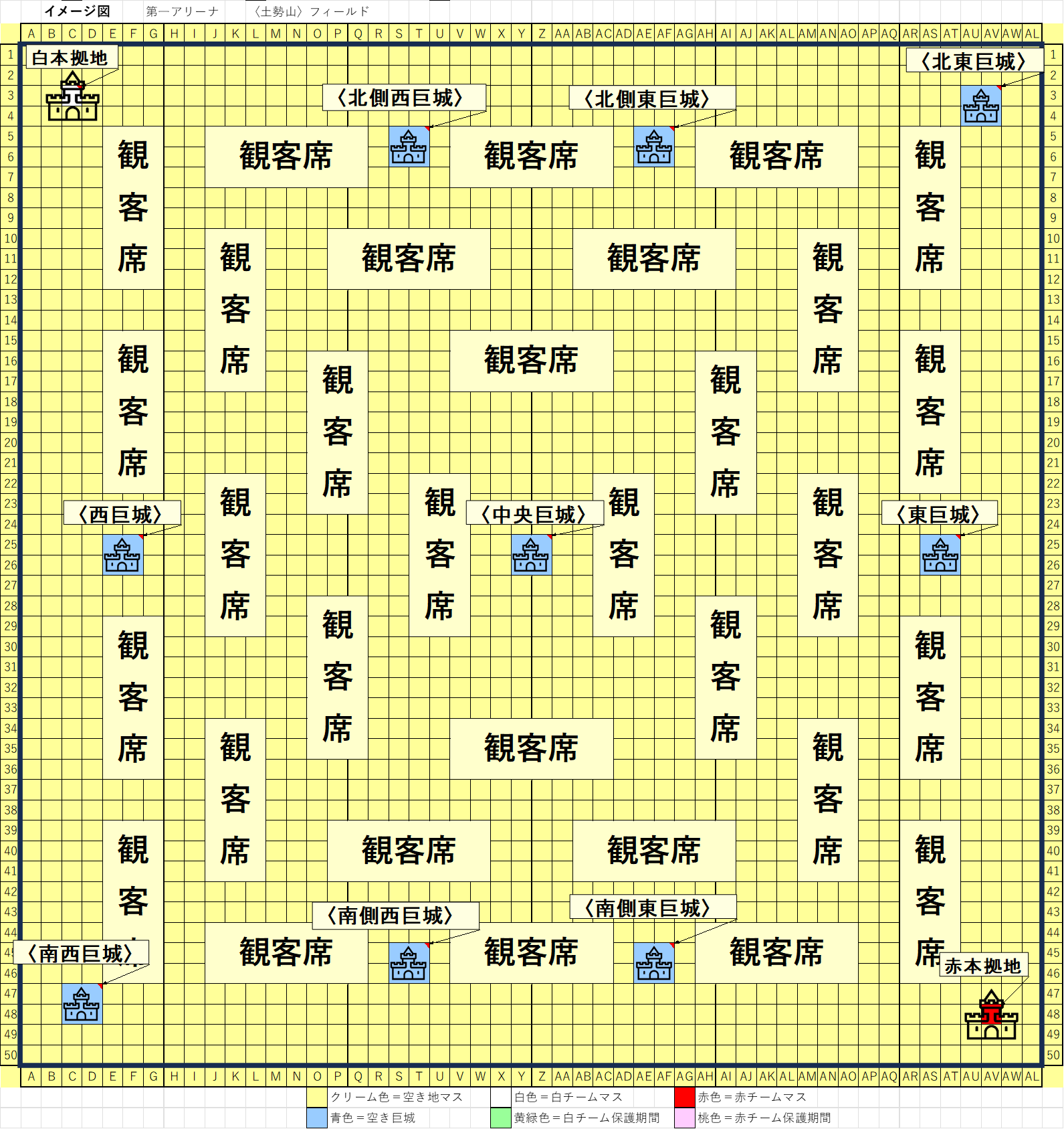 観客席が多いから救済居城に攻め込むのも難しそうですね。ゼフィルスはいったいどうやって東居城や南側東居城に攻め込むのか…