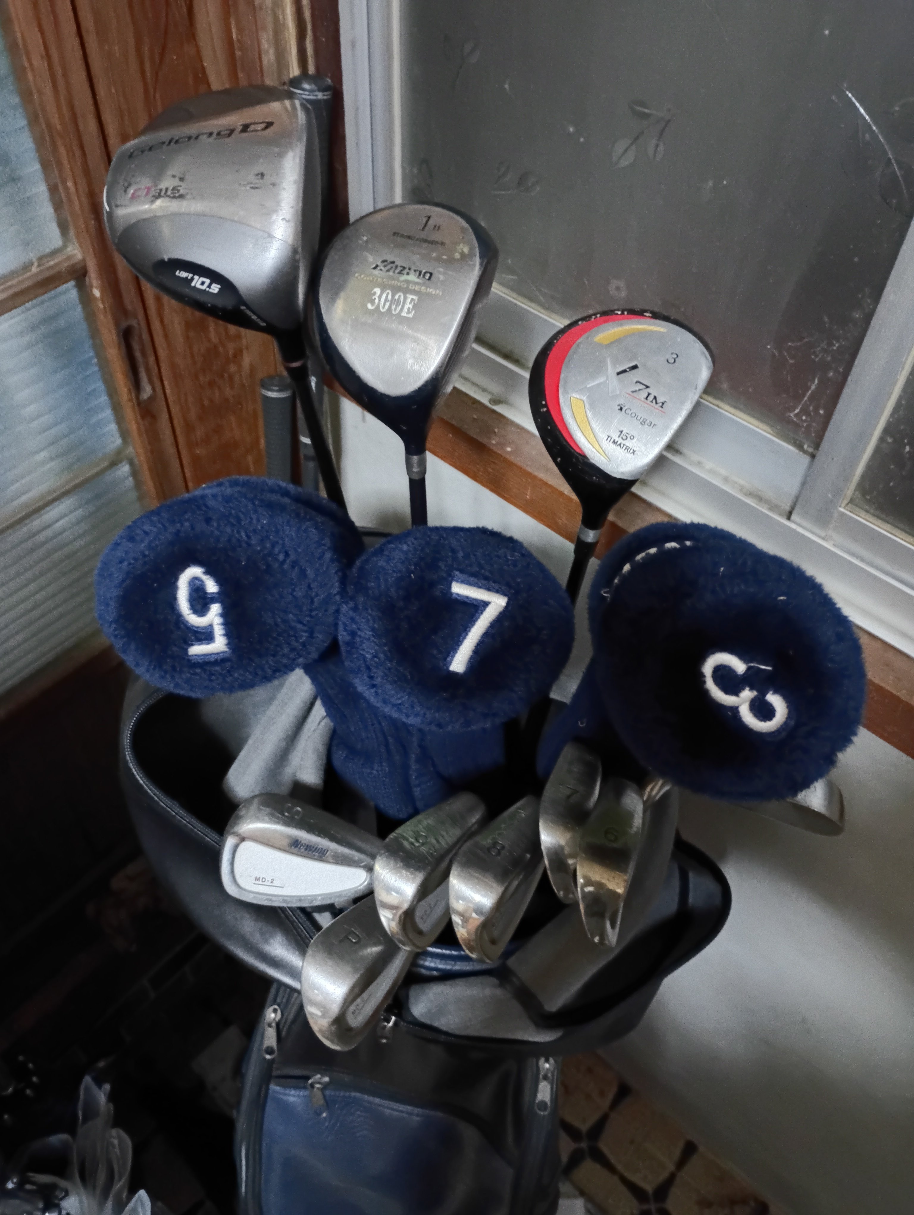 亡き父の遺品を譲り受けたもの。ドライバー(1W)は練習中に割れてしまった。