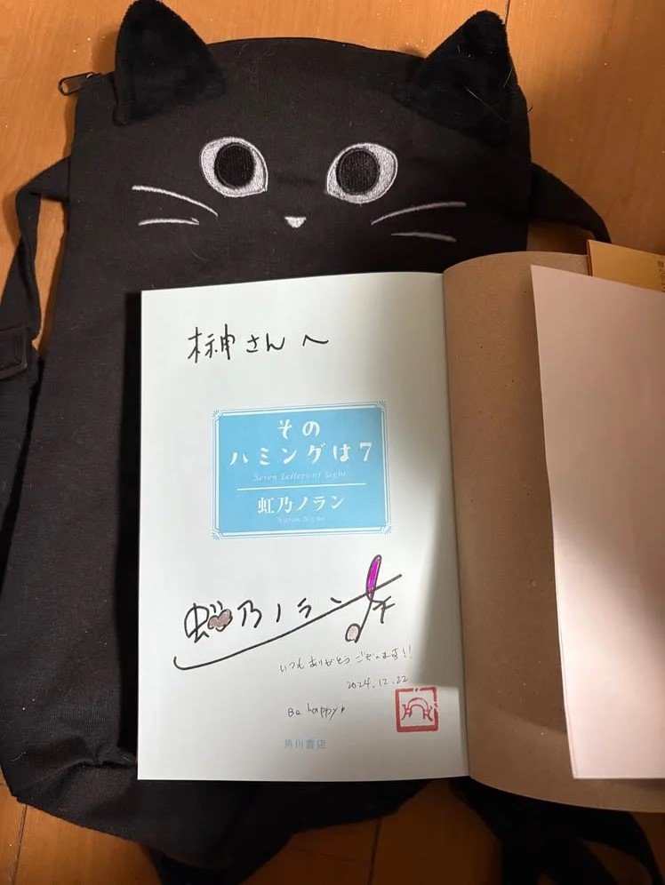 2024年12月22日、名古屋志段味図書館にて開催された虹乃ノランさんの『そのハミングは7』発売記念のトークイベント&サイン会に参加させていただきました。5月の創作ワークショップに参加以来の志段味図書館ですね。前回はナビがおバカだったせいもあり、随分と遠回りな案内をされましたが、今回は的確なルートで案内されてまぁよかったかなと。かなり余裕を持って到着出来ましたので、早めにサインをいただきました。ありがとうございました。カルディのハロウィン時に発売されていた黒猫のリュックっぽいもの、見せるのを忘れてしまいました(汗)。