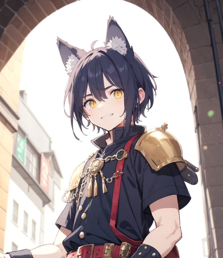 容姿 首までの黒い髪 黄色い目 美少年のような顔立ち 狼の耳と尻尾がある