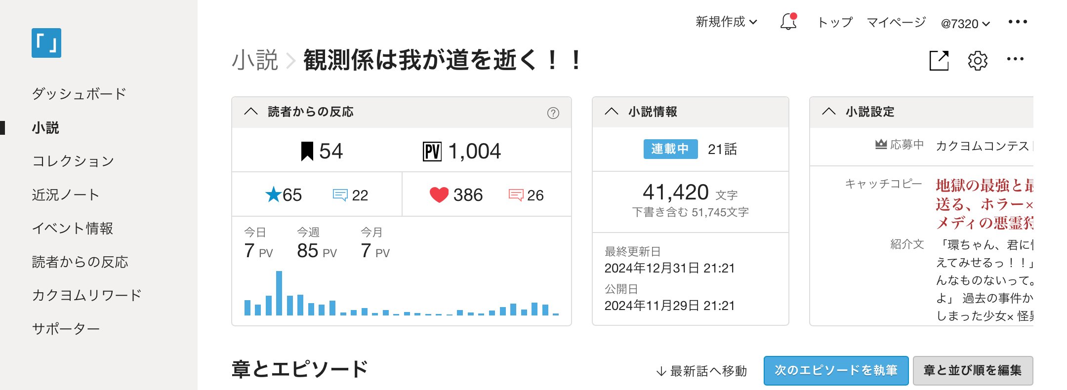 下の画像は、特にお正月関係なく年を越したら1000PVを超えていておめでたかった「観測係」の画像です。