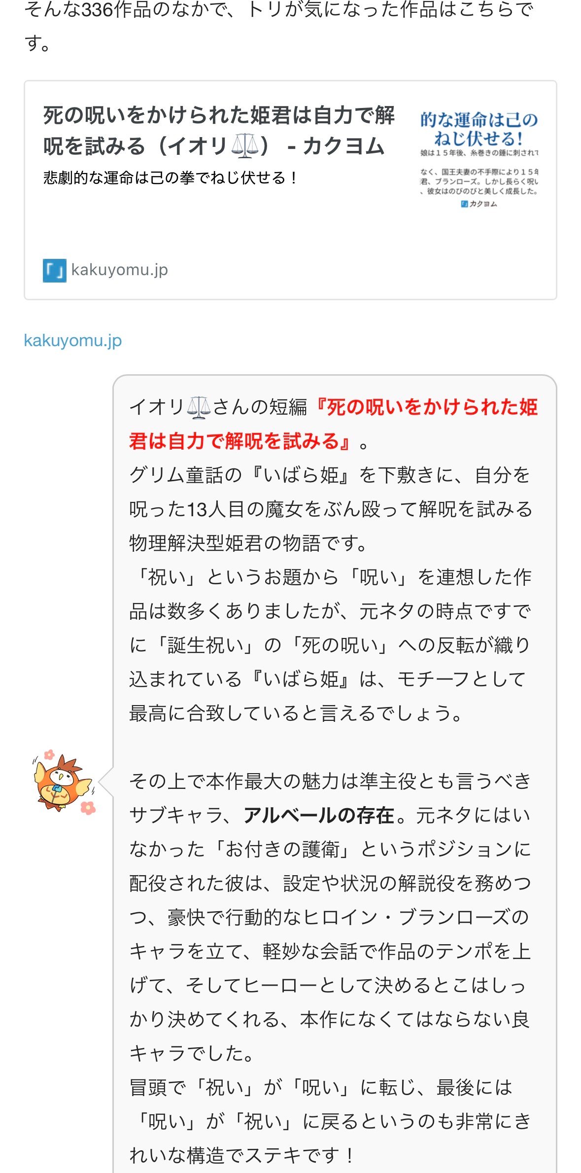 カクヨムコン11【短編】の「お題フェス11『祝い』」にてわたくしめの作品『死の呪いをかけられた姫君は自力で解呪を試みる』がトリさんの気になった作品にピックアップされました!(