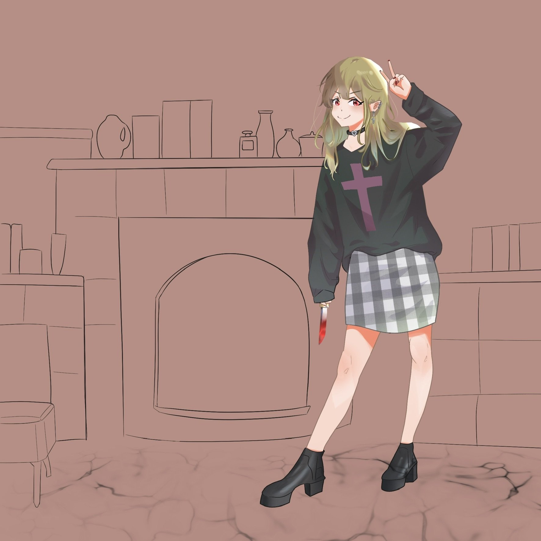 画像は上記執筆中の俺の作品のキャラです。一応異世界系ミステリーです。ナイフ持ってますが、あくまで犯人候補の一人であって犯人確定ではありません。(てか主人公以外の登場人物全員犯人候補です)