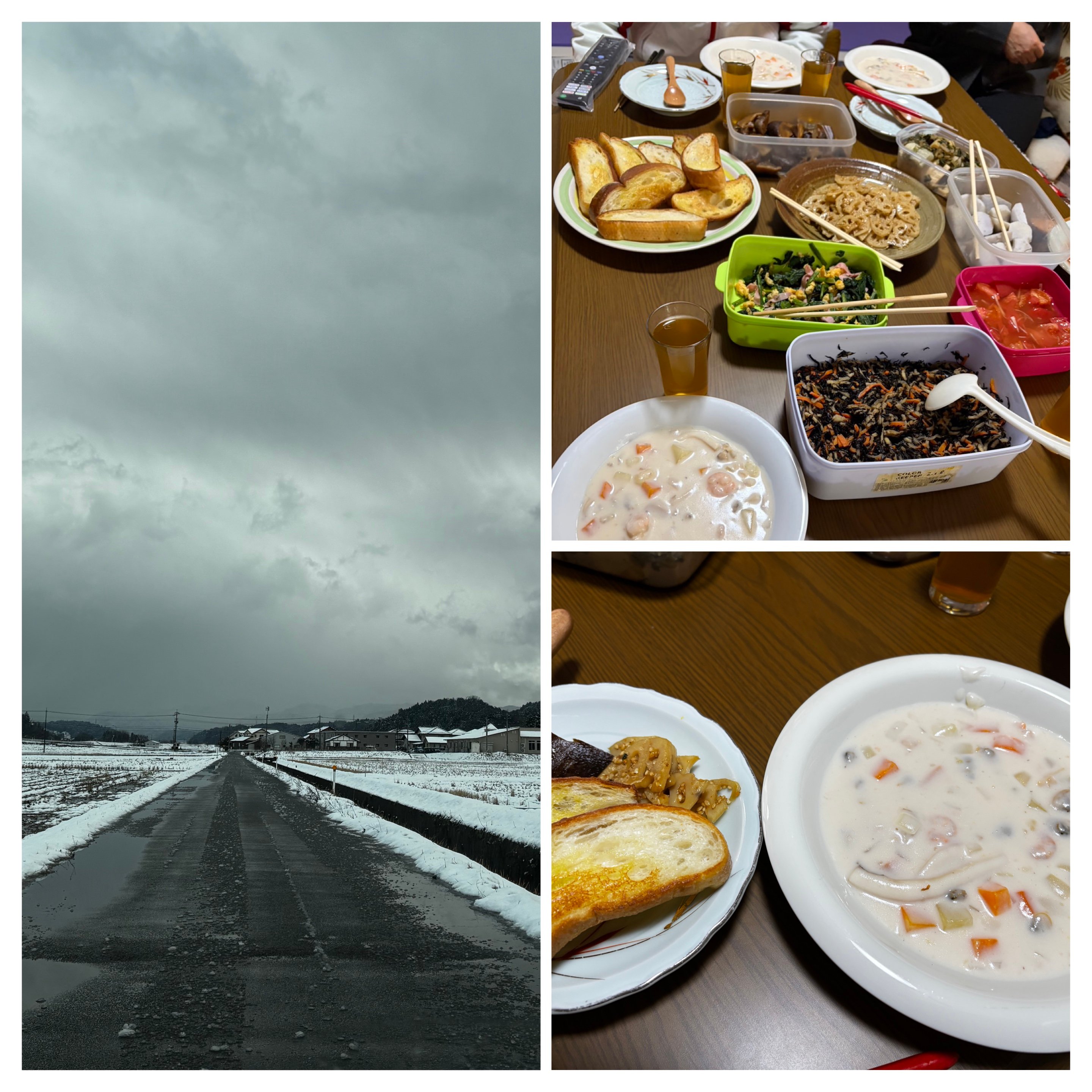 右側は食卓(コタツ)での食事の様子です。
