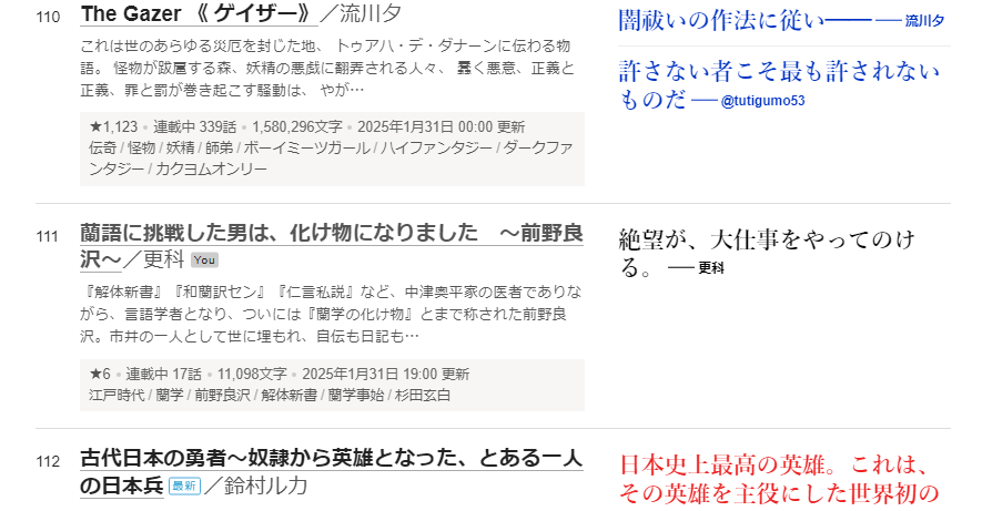2025/02/01現在111位だそうです。ワーオ、ぞろ目ww