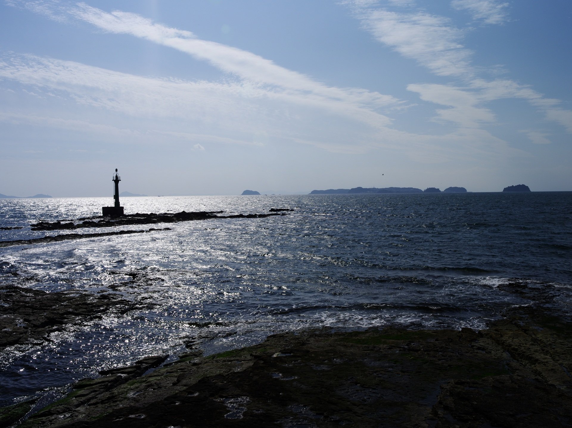 佐久島と遊歩道でつながる『大島』の南側先端の海岸線には砂浜は一切無く、岩浜が荒々しい絶景の海岸でした。
