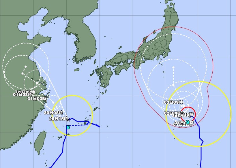 15m/s以上の強風域 北東側 390 km (210 NM)