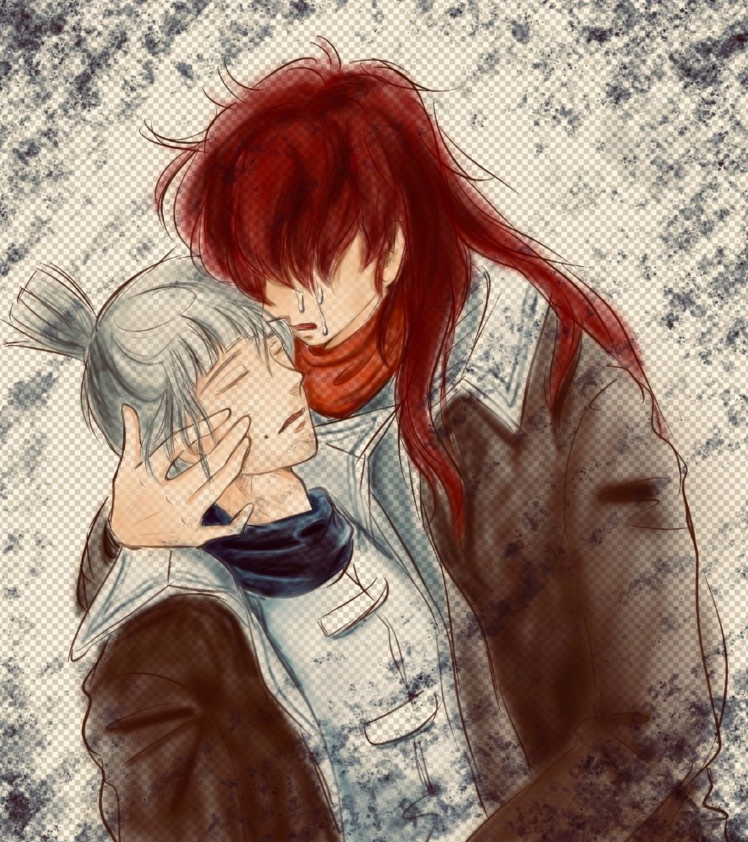 下のイラスト(手書き)はすでに命を落としてしまったジュードを抱えているデュークです。