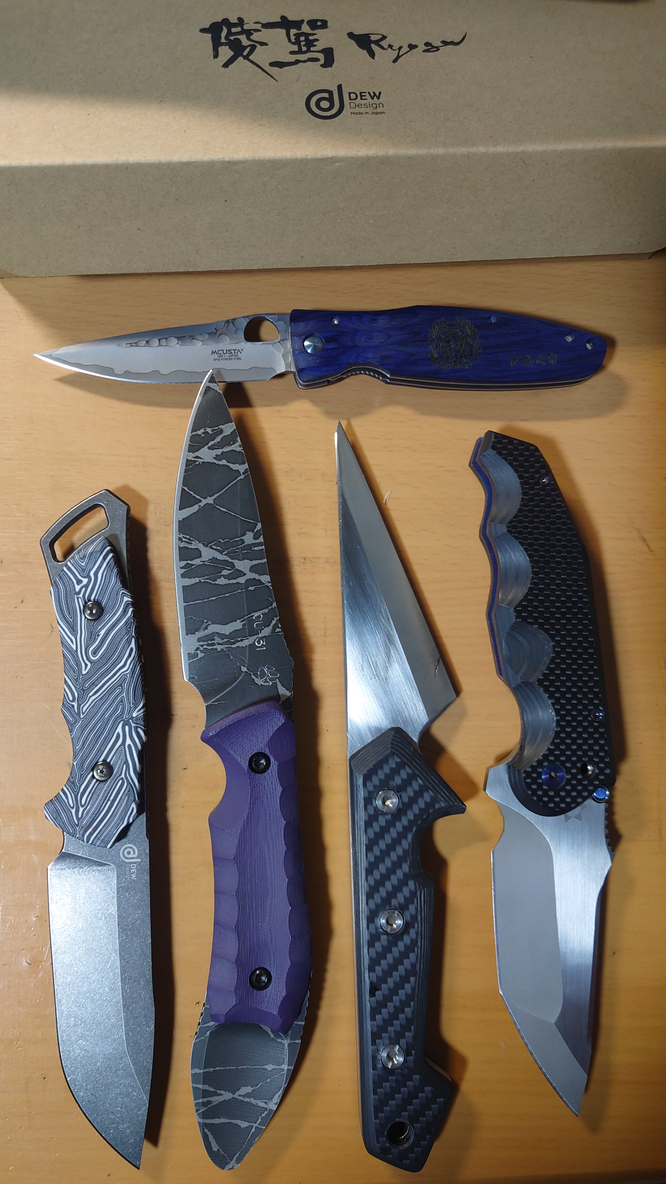 一番左は善光寺のナイフショーの主催者、原さんの息子さんのブランドのナイフ。