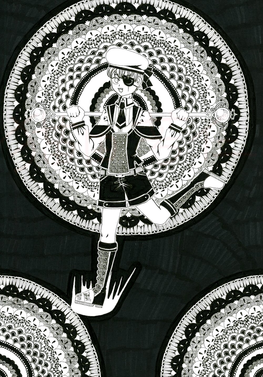 最初は清楚系制服風魔法少女だったのだが、ラフを描いている間に軍属戦闘狂魔術師ショタになってしまった。なんで。