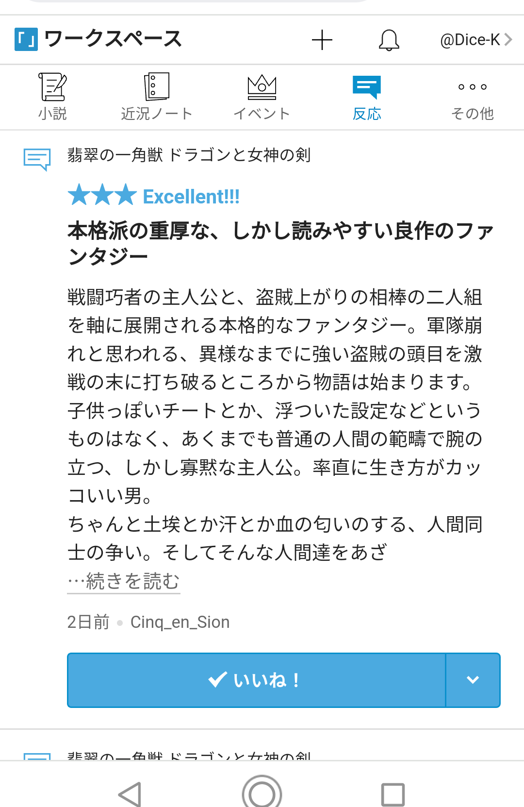 Cinq_en_Sion様より、翡翠の一角獣 ドラゴンと女神の剣にレビューを頂きました。