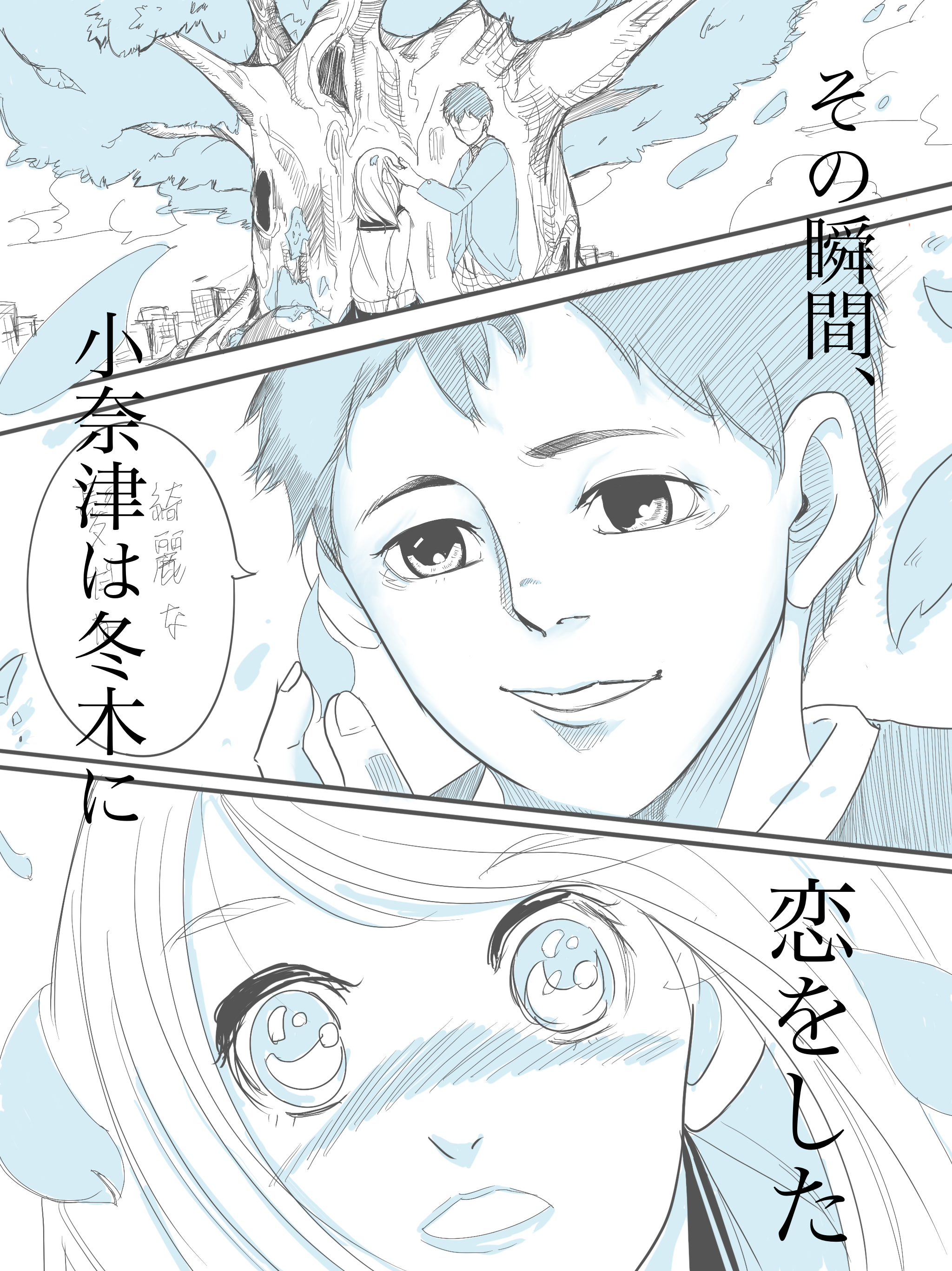 まだ始まったばかりなのですが、綺麗な文章と淡い恋の色彩を感じさせてくれるお話。これはもう、今までやったことないけど、少女漫画風とかやってみたいとか思ったんですが、前述の通りコンディション不良も相まって自信はなし。それでも描いている時はノリノリで楽しかったので、リベンジするかも。