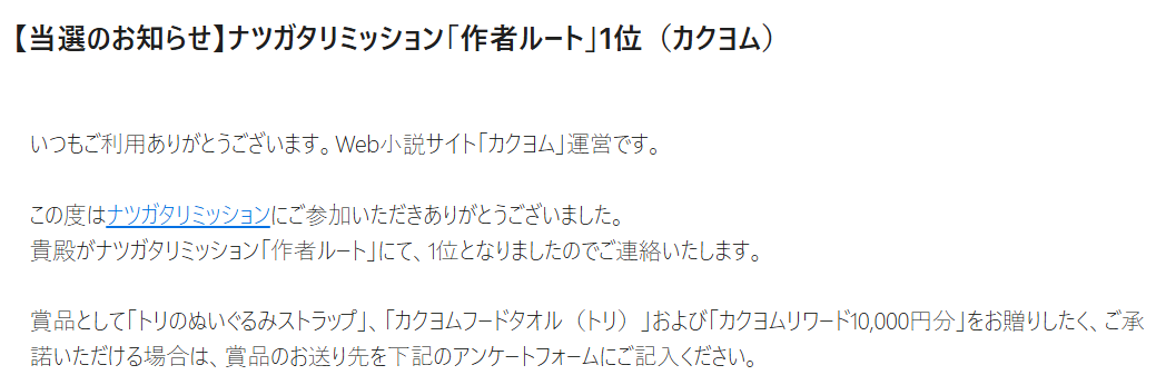 #カクヨム #ナツガタリミッション #ご報告 #感謝