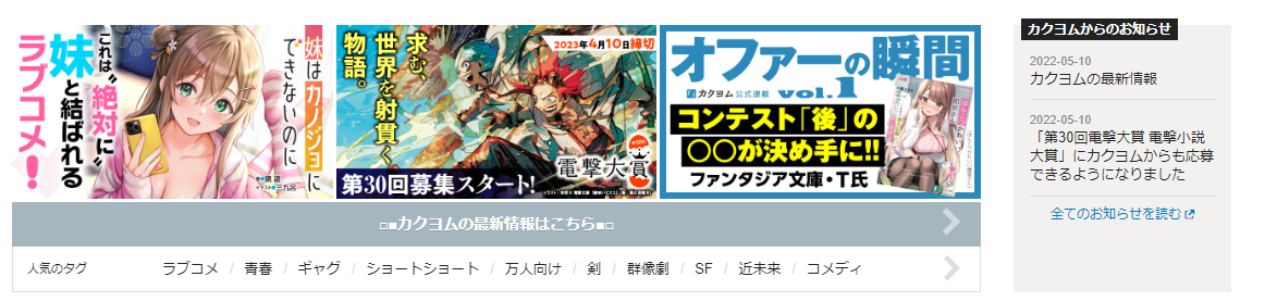 宣伝欄?の直下に「カクヨムの最新情報はこちら」というリンクが出てきて、「ああ、確かに最初っからそこで良かったじゃんね」って思ったんです。なんて賢いんだ。良く思いついた。叡智。