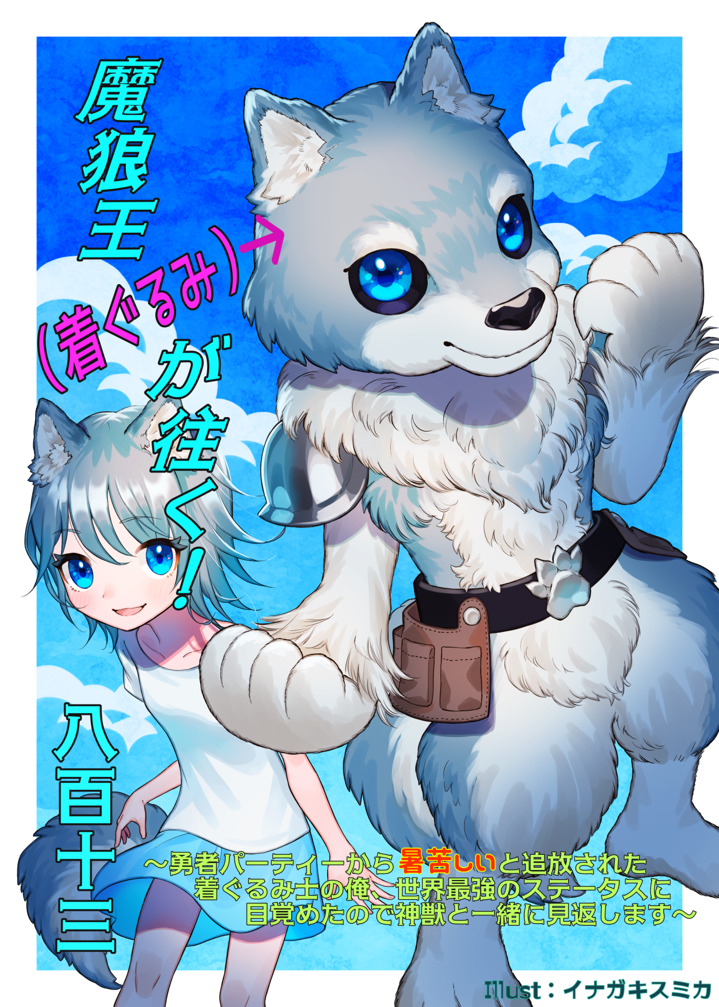 この度、イラストレーターのイナガキスミカ様に依頼して、拙作「魔狼王(着ぐるみ)が往く!~勇者パーティーから暑苦しいと追放された着ぐるみ士の俺、世界最強のステータスに目覚めたので神獣と一緒に見返します~」の表紙イラストを作っていただきました。