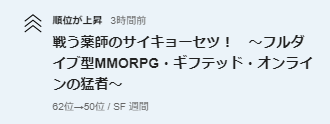 『戦う薬師のサイキョーセツ!~フルダイブ型MMORPG・ギフテッド・オンラインの猛者~』は公開から一カ月が経ちまして、
