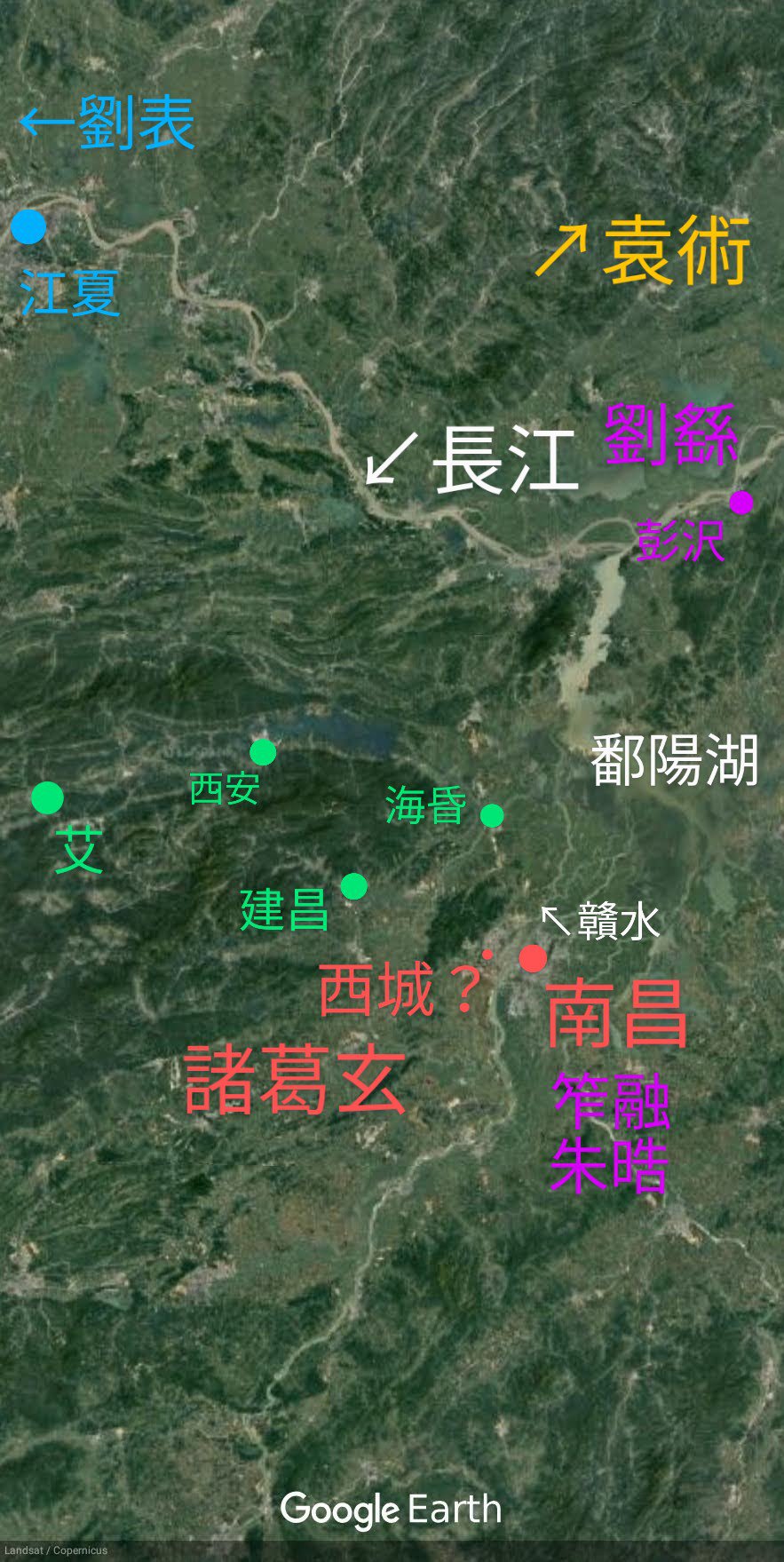 の歴史解説『諸葛孔明前史 中編』の諸葛玄のいた予章周辺の地図を掲載します。