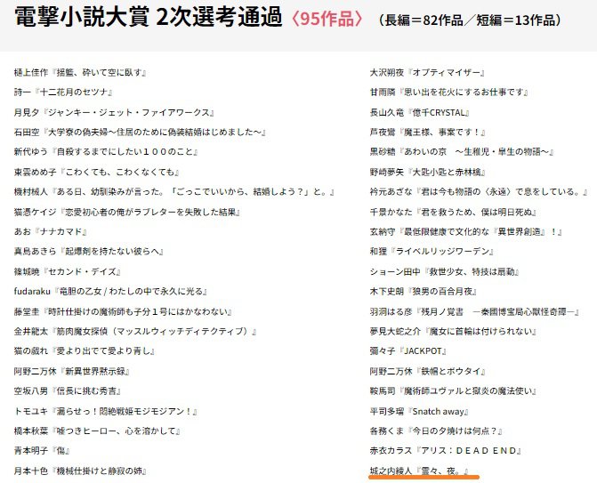 電撃大賞、本日2次選考と3次選考の通過者発表でした。