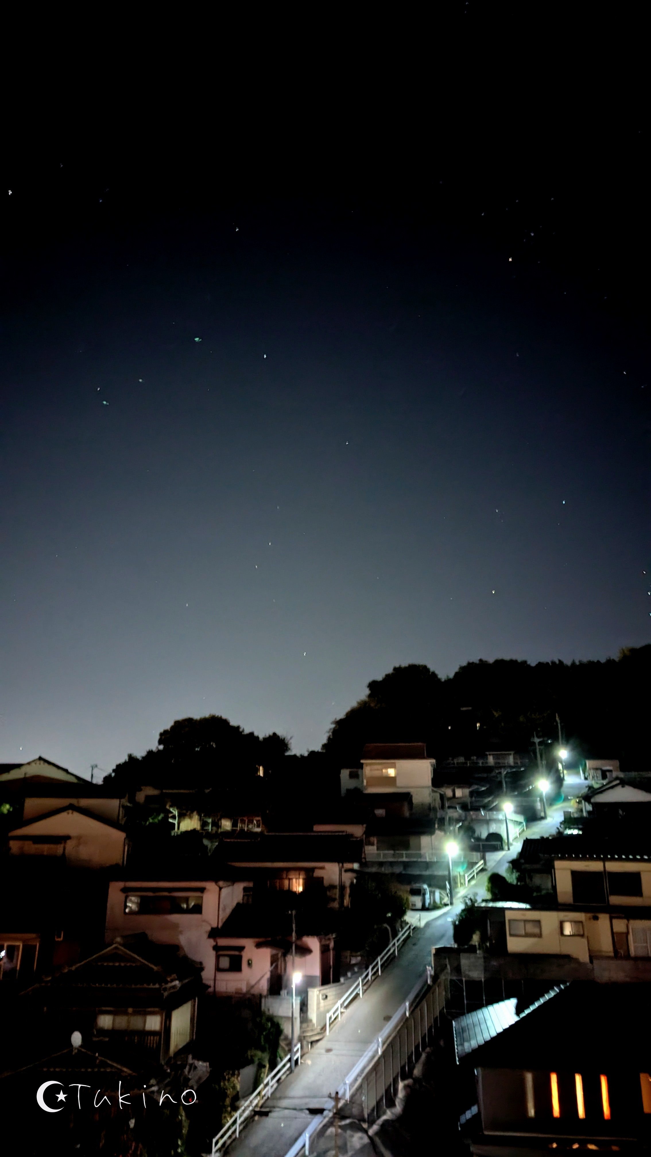 星空と街灯と階段と家々のあかりが不思議で幻想的で……思わずパチリと📷✨
