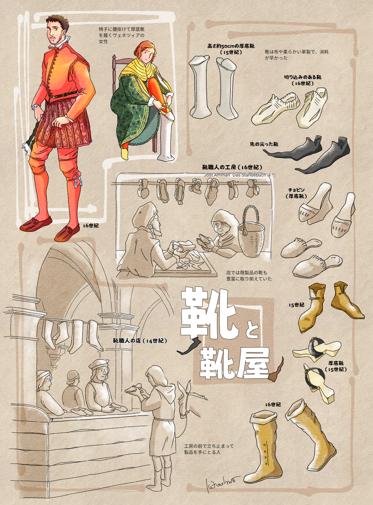 【挿絵】西洋中世の日常生活⑤「中世都市は靴屋だらけ」