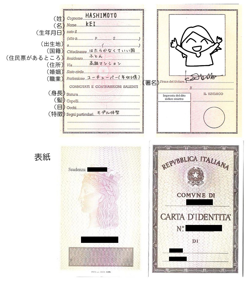 イタリアの身分証明書はCarta d’identità(カルタ・ディデンティタ)と呼ばれ、直訳すると「アイデンティティ・カード」です。