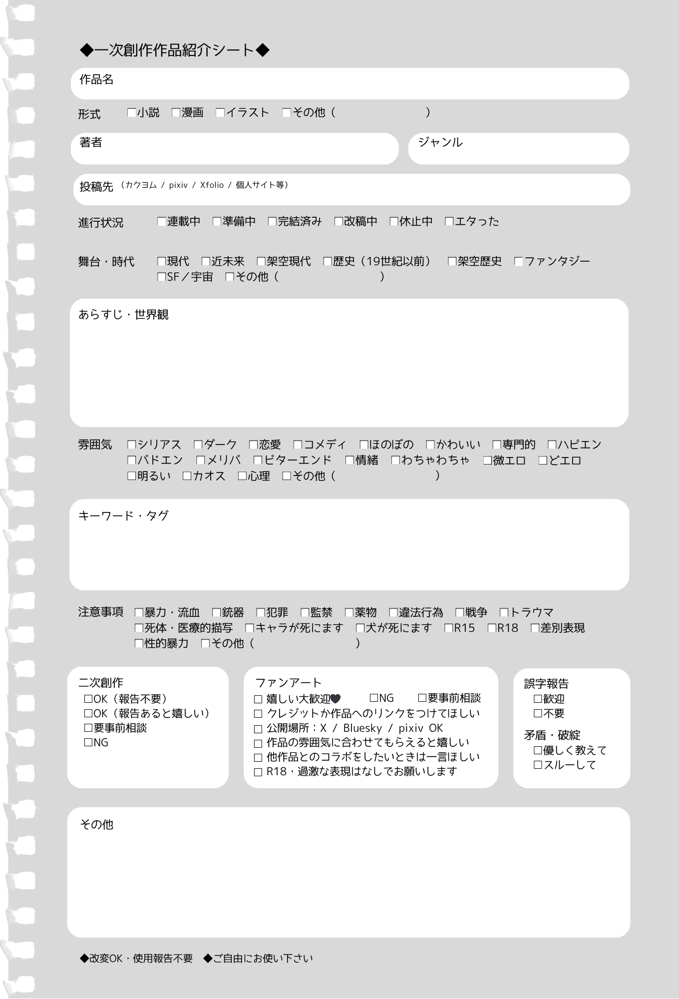 思いつきで、一次創作向けの紹介テンプレートを作ってみました。