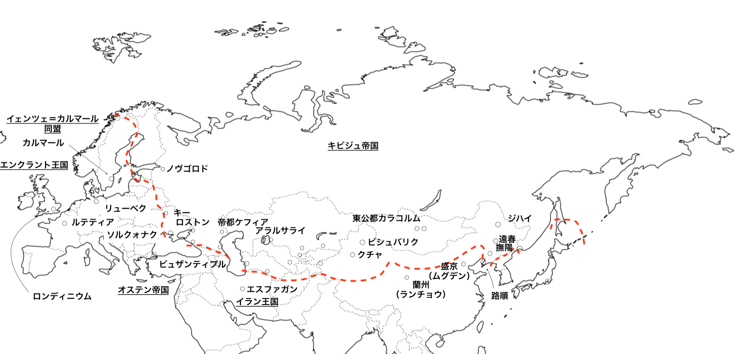 下にキビジュ帝国時代の大陸地図を載せたので、参考までに。