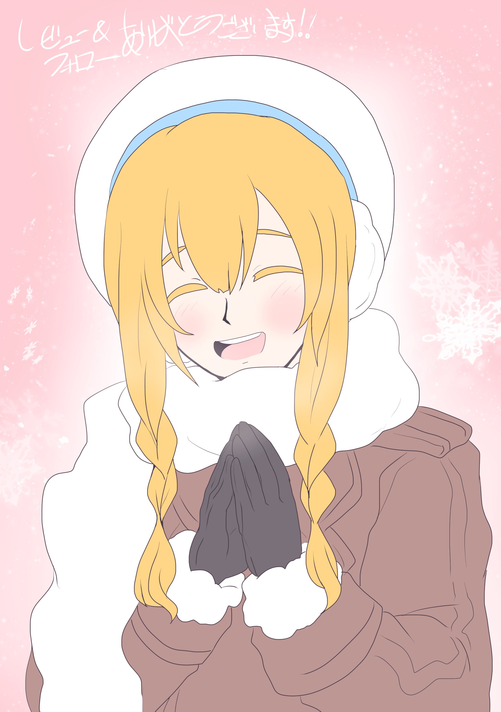 の気持ちを込めて、お礼絵に冬服ルカ君描きました。
