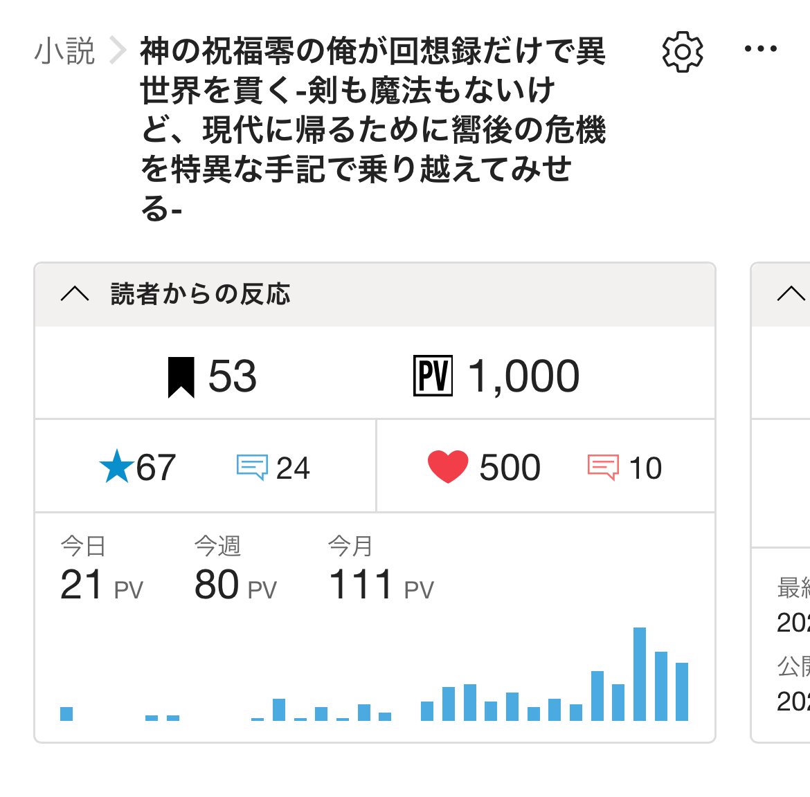 なんとこの度、「神の祝福零の俺が回想録だけで異世界を貫く」が1,000pvを達成することができました!