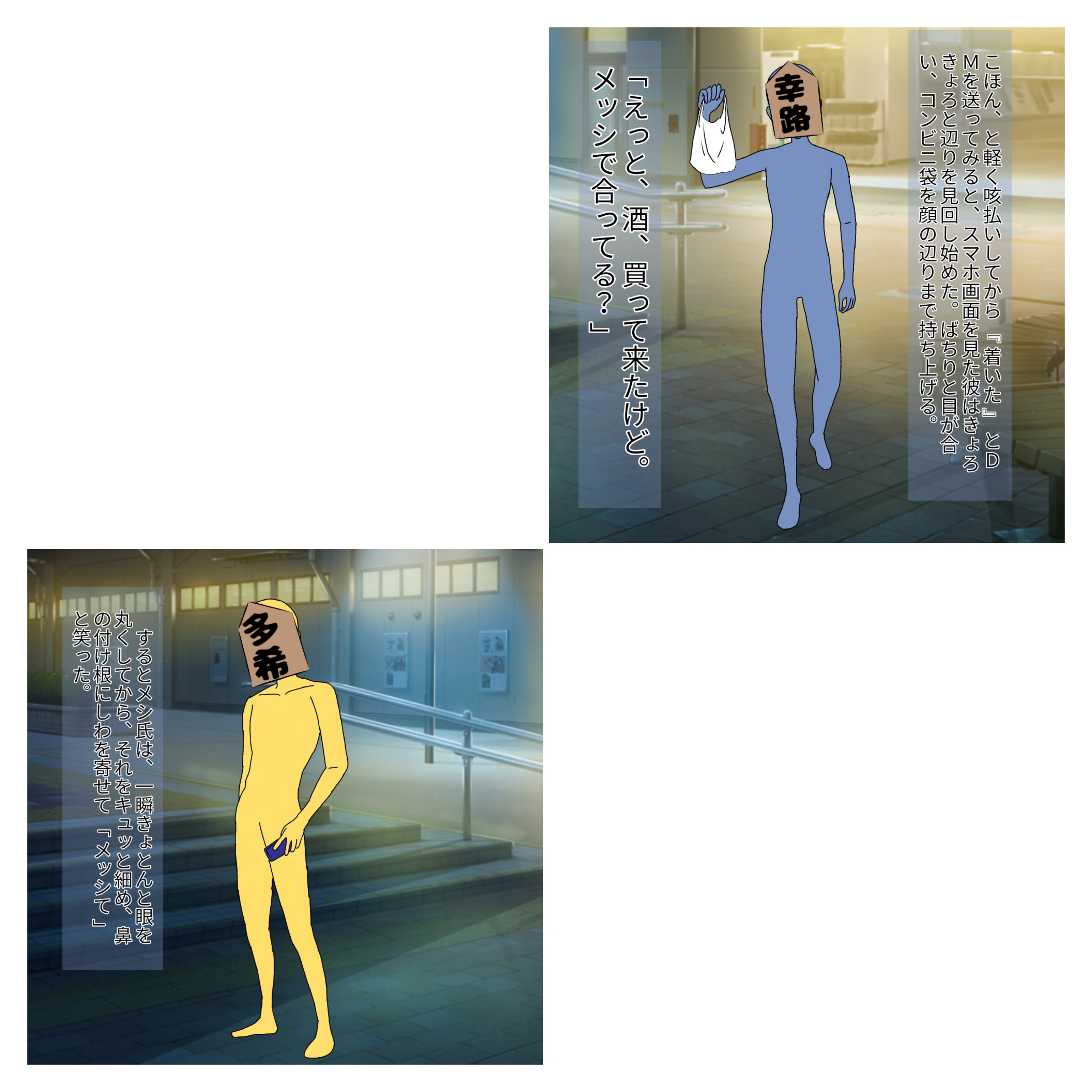というわけで、せっかくなので、それっぽく描いたユキタキを載せておきます。あれですね、カクヨムコン短編でいうところの最終話のシーンです。思いっきり背景が同じなのでお前らどういう感じで向かい合ってんの?向かいに同じ駅あんの?って話なんですけど、良い感じの背景がなかったものですから、勘弁してください。
