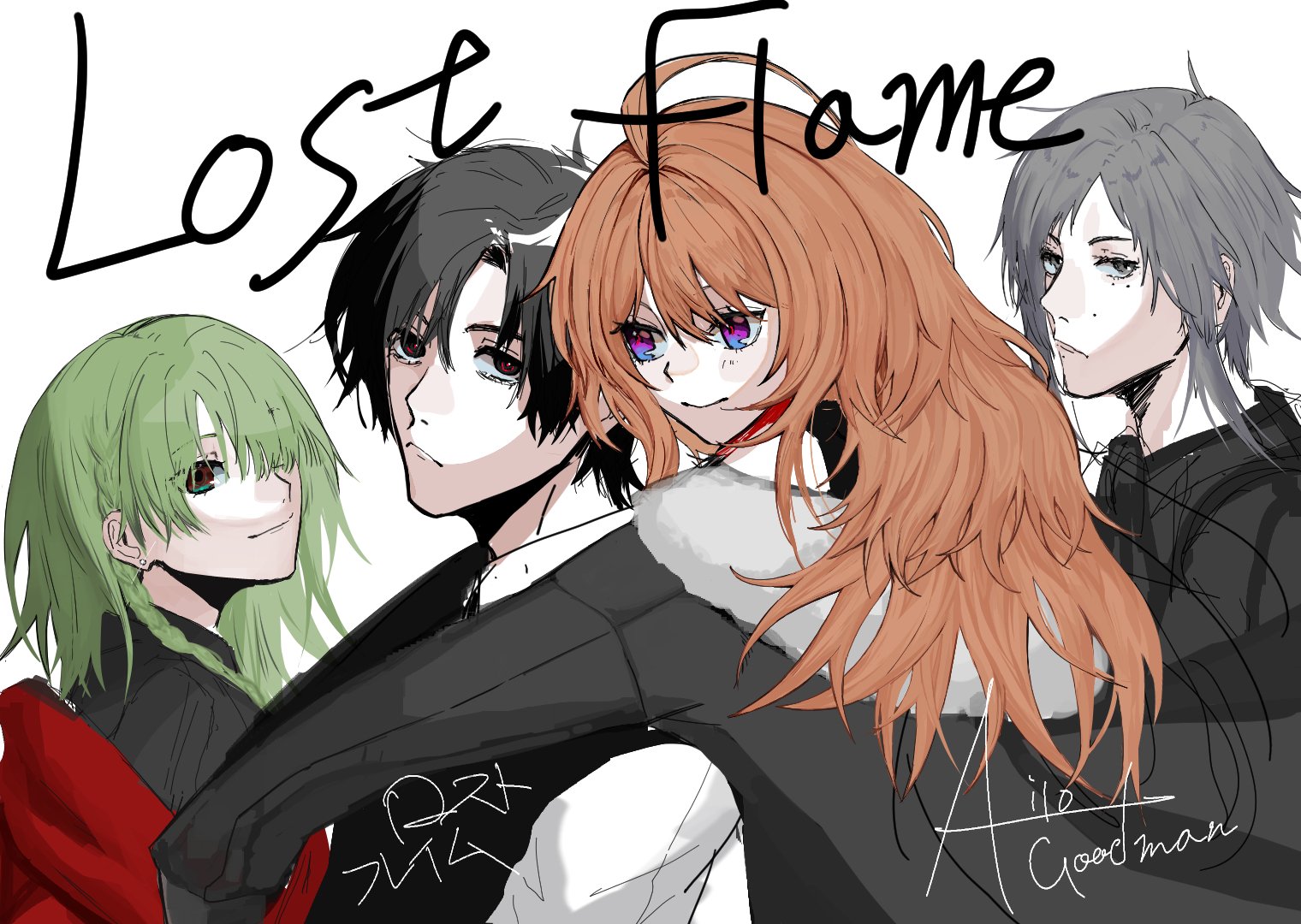 右から順に主要キャラのイオタ、獣、鹿目、シグマです。