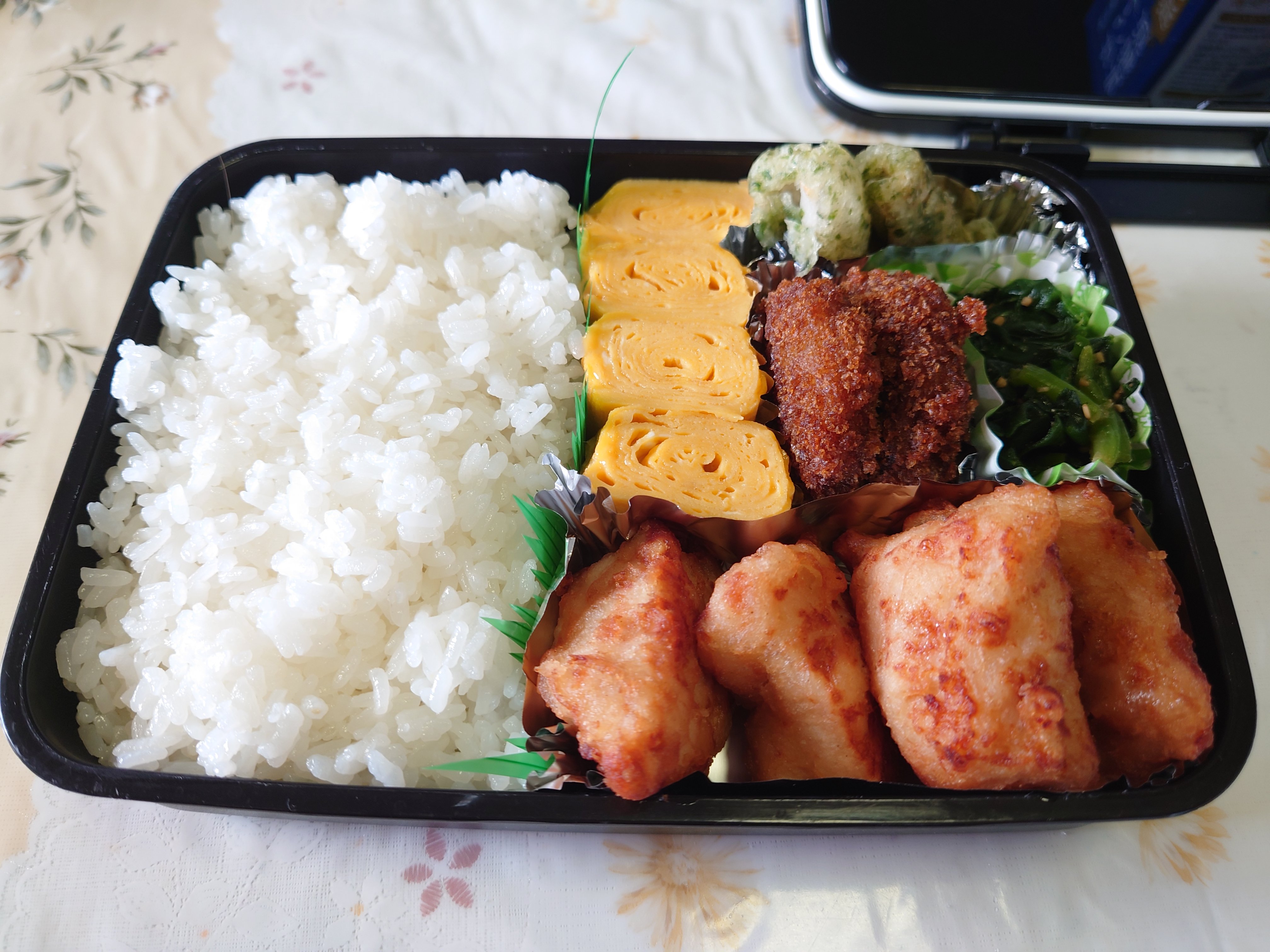 唐揚げ1個とご飯少々でお腹満足する僕♪