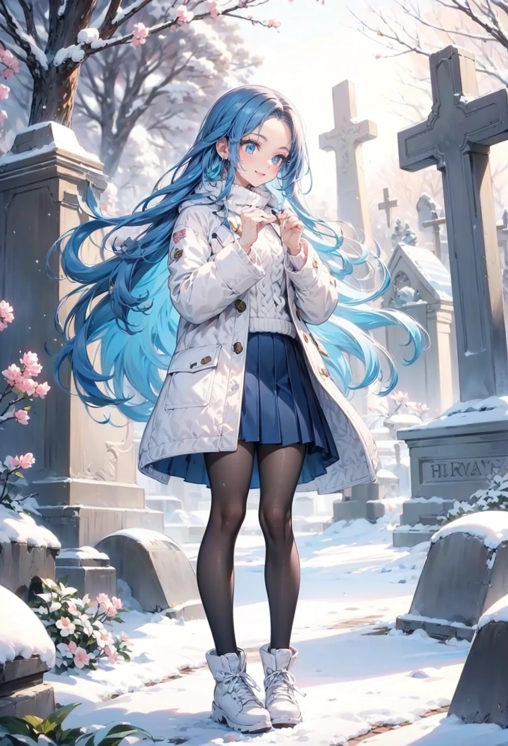 淡い青色のプリーツスカート