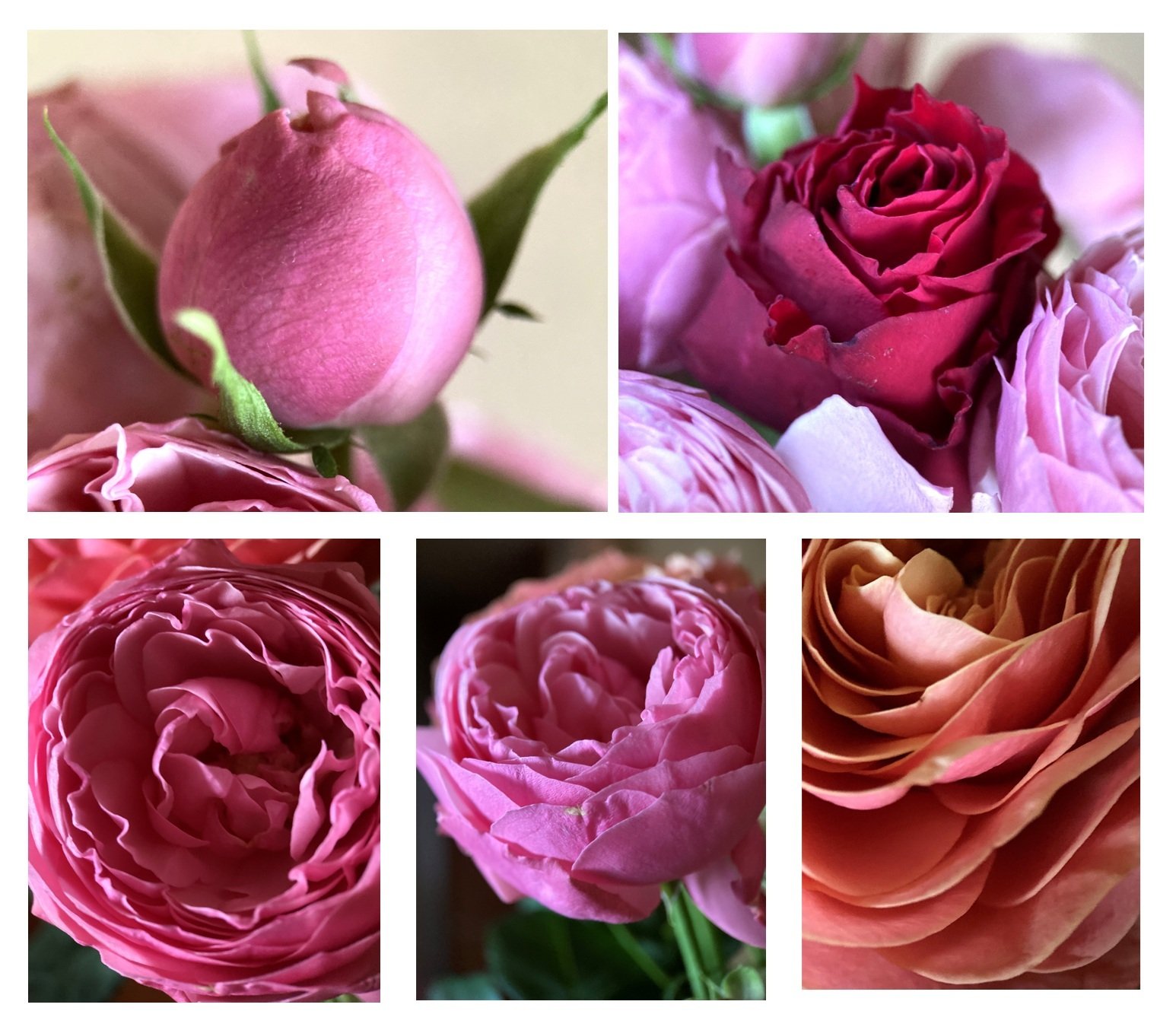今回のバラは、形が、私が定番としてイメージするバラとは違っており、花びらの重なり具合が多くて華やかだったのと、蕾も入っていたのでちょっと撮ってみました。