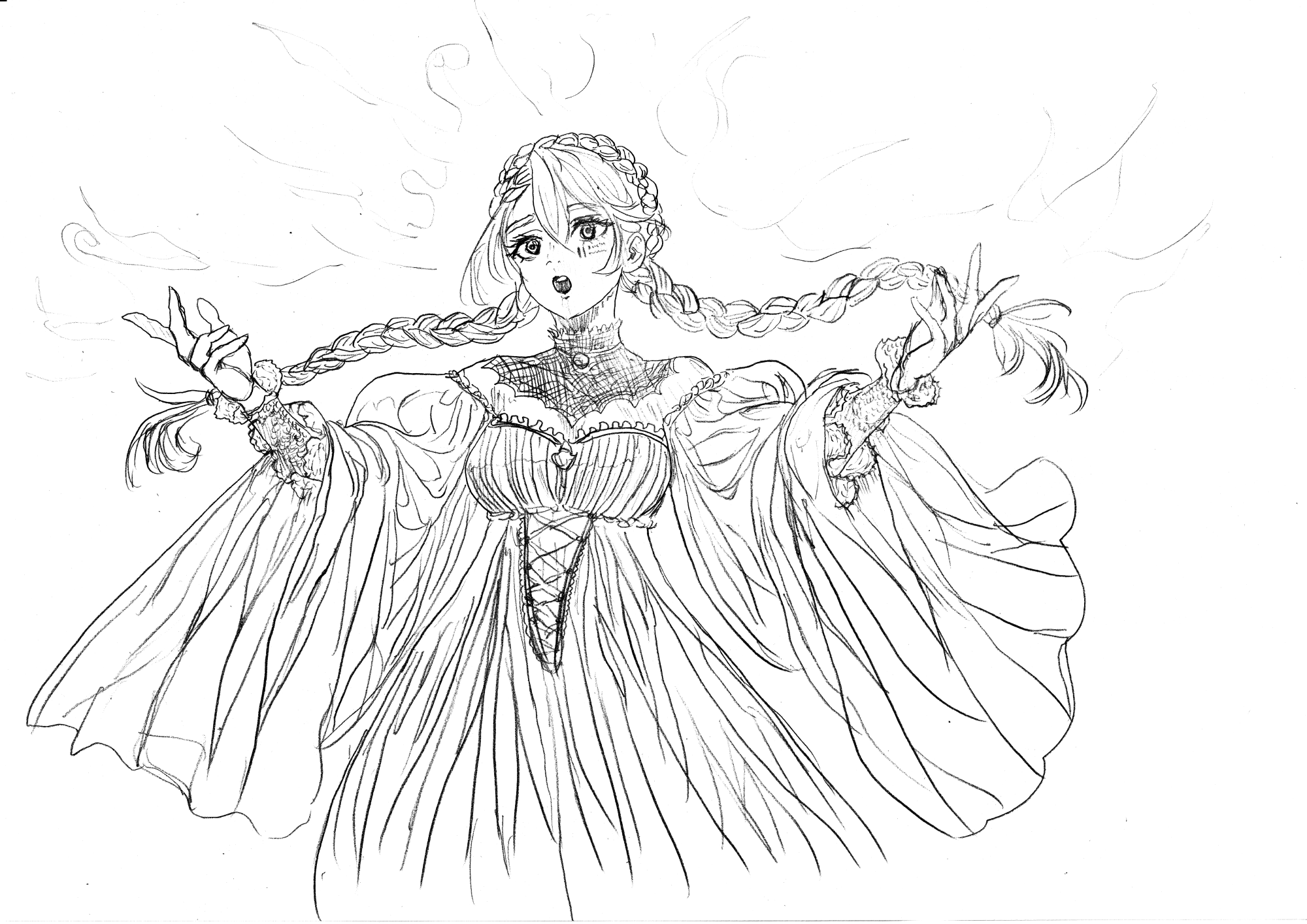 神々しさを演出するドレス、主様をうまく惹きつけたようです。