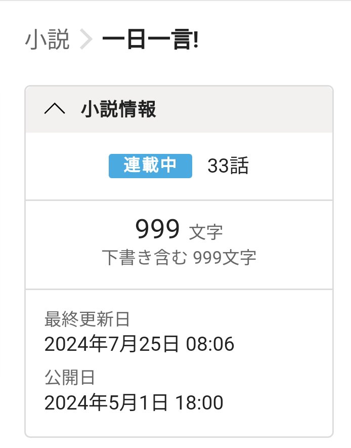 「一日一言!」の投稿話数が33話になって、999文字になりました。すげー