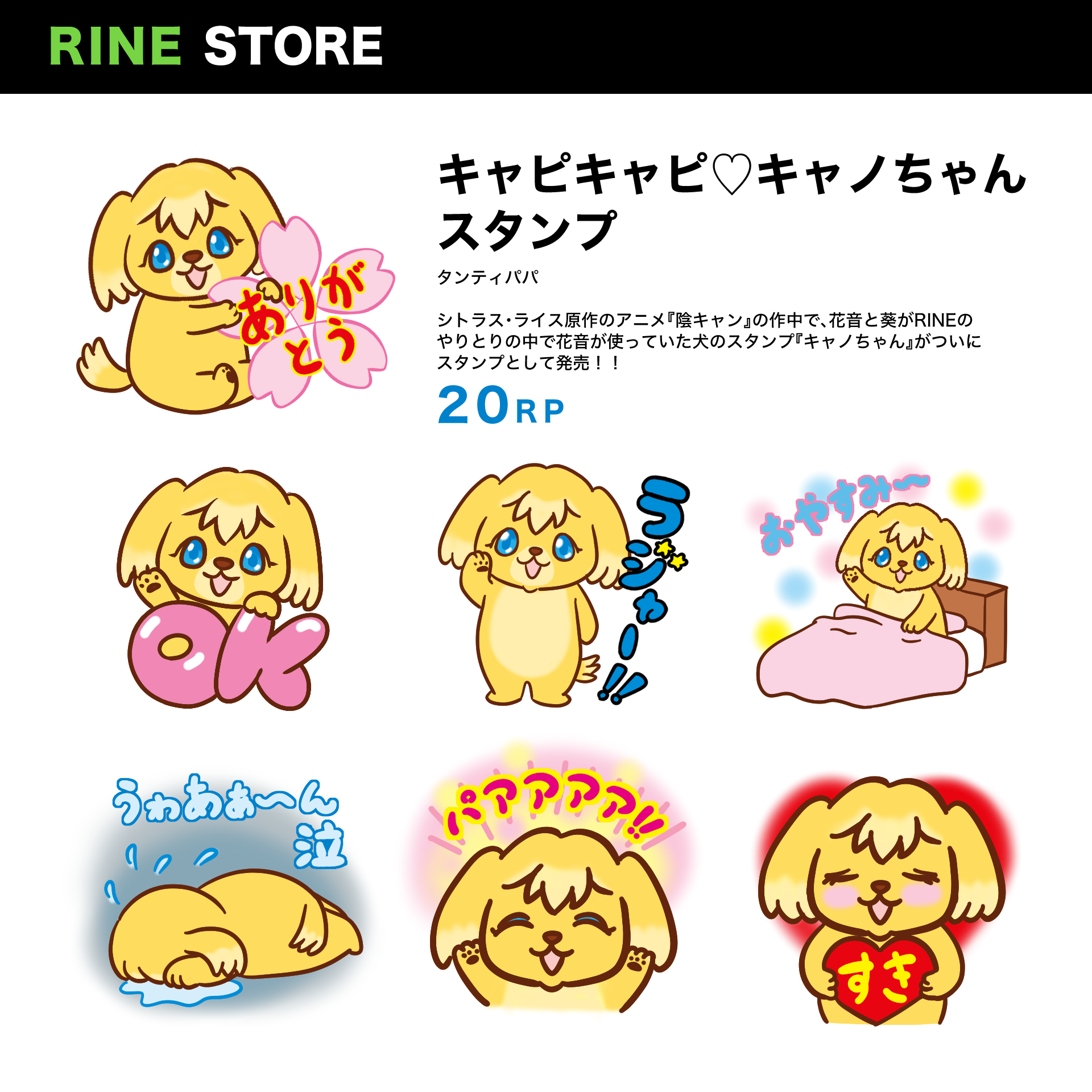 この度、長らくお世話になっておりますタンティパパ様より、陰キャンプのファンアート『RINEスタンプのキャノちゃん』を頂戴しました!