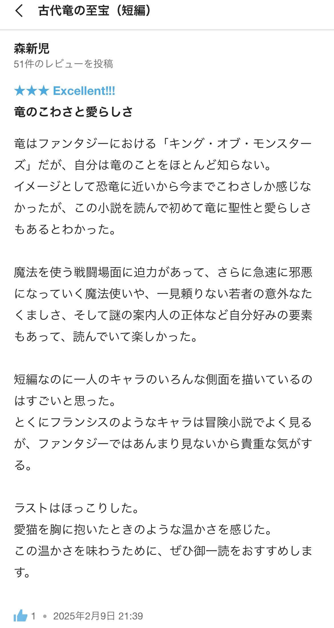 『古代竜の至宝』以外の作品もこれから読ませていただきます。