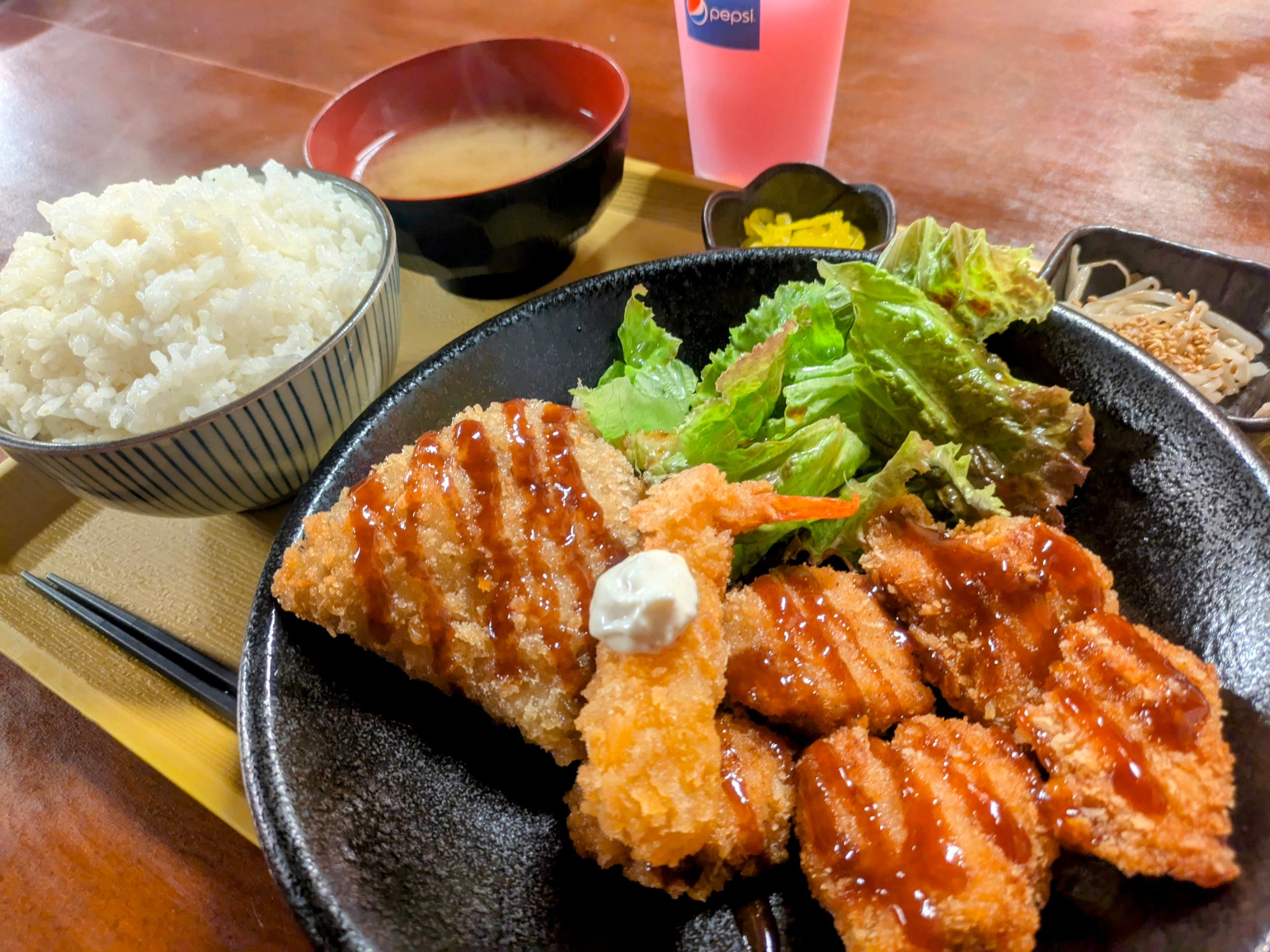 今日のお昼のミックスフライ。