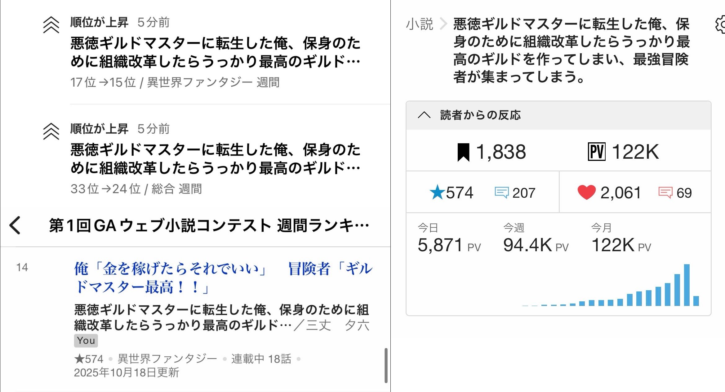 ただ、まだまだ伸びたいです!なんとしても1位になりたいと思って書き始めた作品です!まだの方もぜひぜひ応援下さい!!