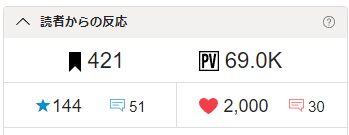 拙作「輝光世界の星導者~救世したら美少女化してしまった最強勇者、正体を隠して女学院へ。新たな使命は嫁探し!?~」にお寄せいただいている応援(♡)が本記事を書いている時点で2,000件に達しました!