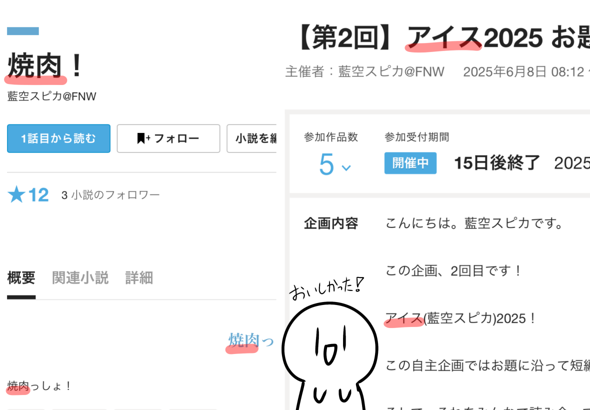 私が現在開催している「【第2回】アイス2025 お題で短編小説!」、ぜひ参加してみてくださいね〜(((