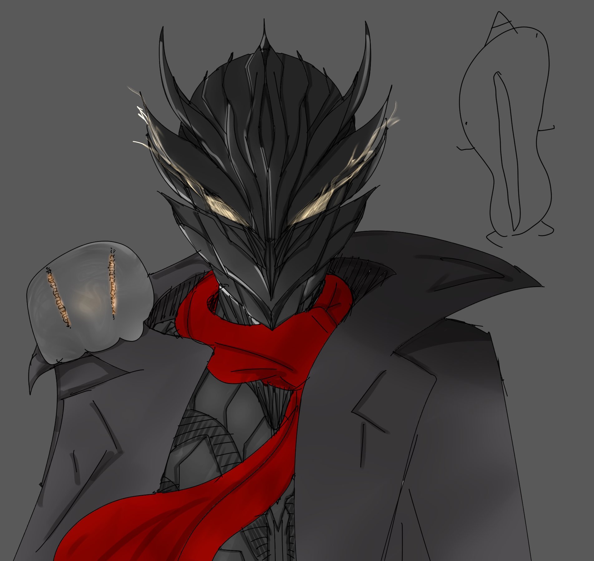 小説繋がりの方(ガリガリワンさん)から、異世界仮面の主人公(真雲)とアイアンスライムを描いてもらいました!!